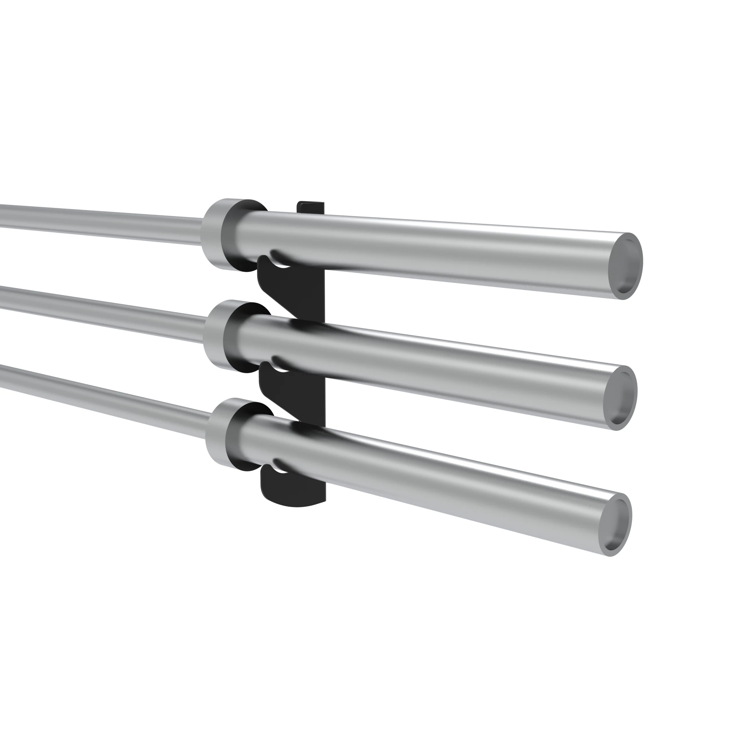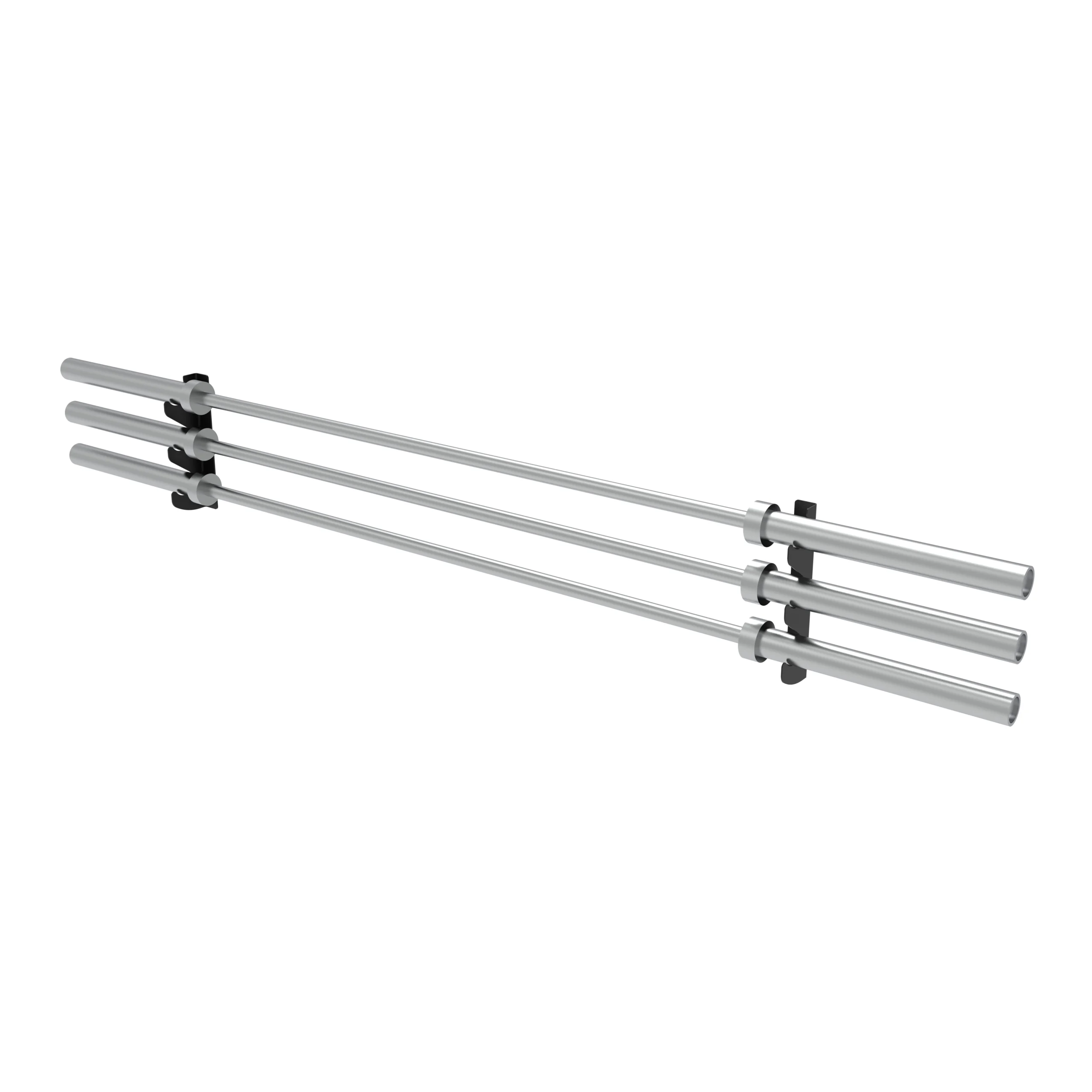 The 3 bar rack can be installed above each other to suit your number of barbells. 3 – 6 – 9 – 12 and so-on. The wall space is the limit.